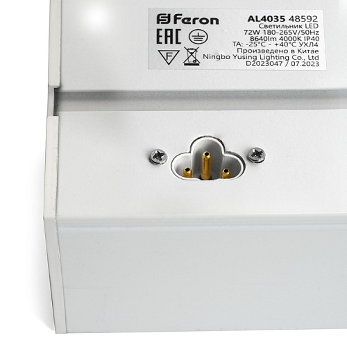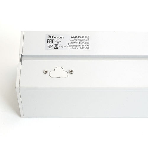 Характеристики Светильник светодиодный линейный Feron AL4035 IP40 48W 4000К, рассеиватель матовый в алюминиевом корпусе, белый 1500*70*55мм