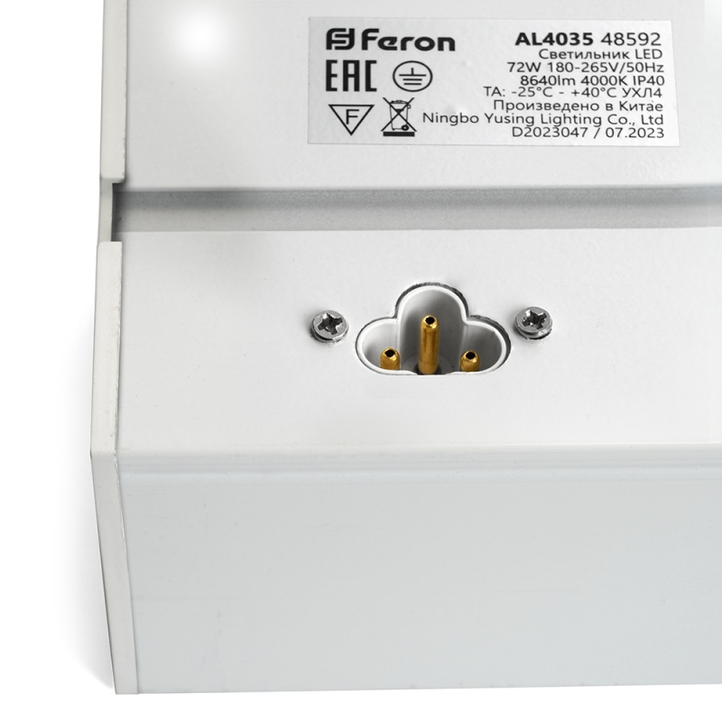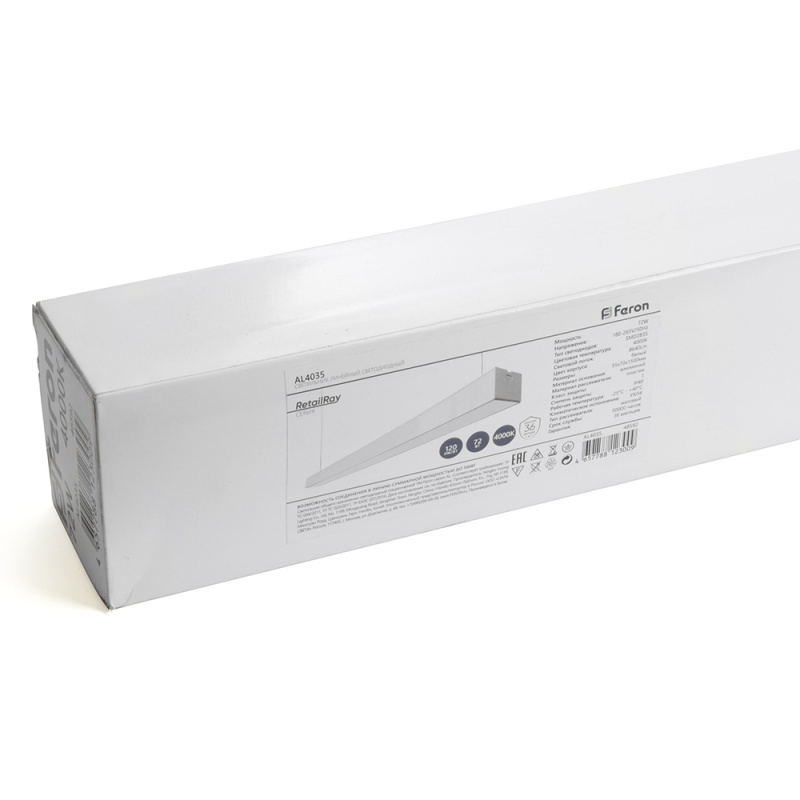 Характеристики Светильник светодиодный линейный Feron AL4035 IP40 72W 4000К, рассеиватель матовый в алюминиевом корпусе, белый 1500*70*55мм