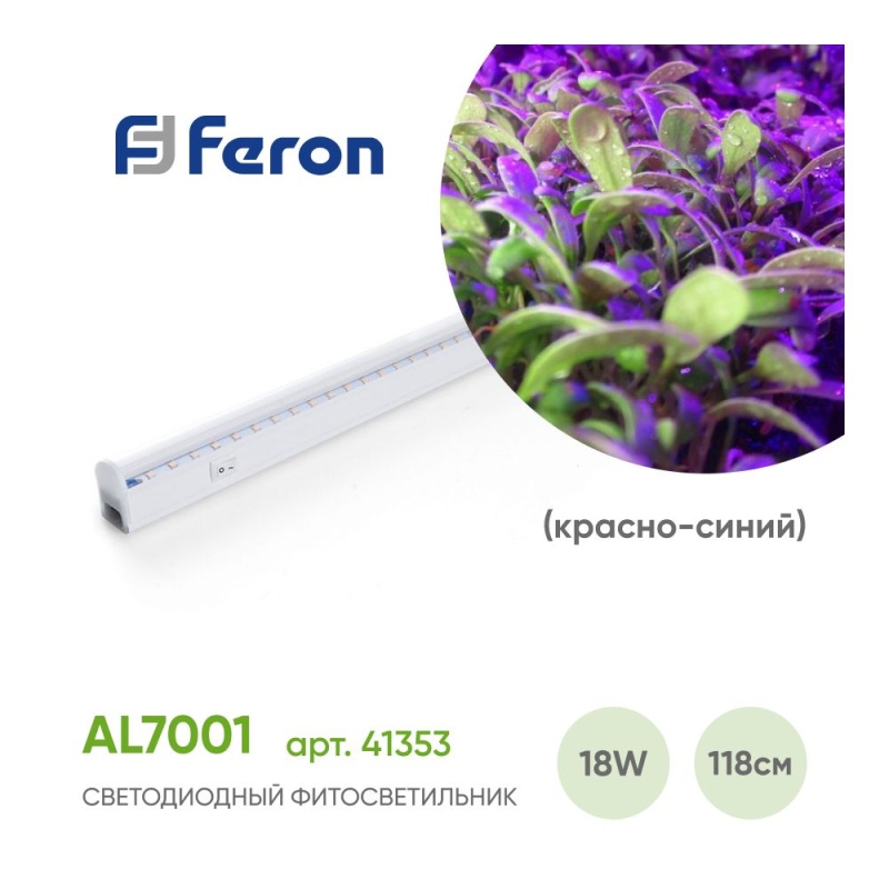 Светодиодный светильник для растений, спектр фотосинтез (красно-синий) 18W, пластик, AL7001 41353
