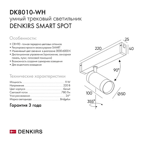 Характеристики Светильник на шине Denkirs SMART SPOT DK8010-WH