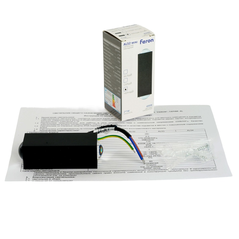 Характеристики Светодиодный светильник стационарный Feron AL52 2*1W 3000K черный