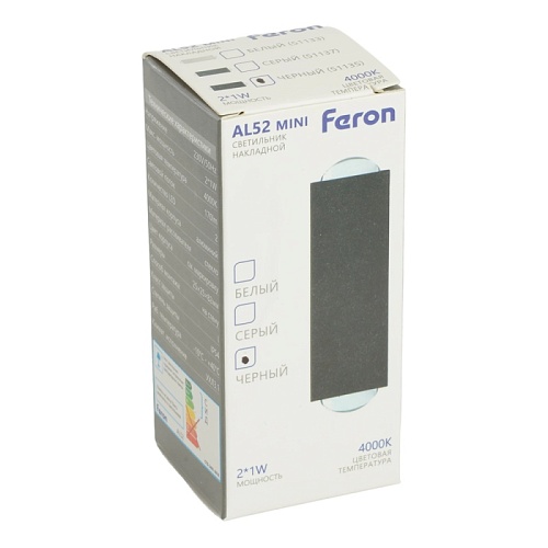 Характеристики Светодиодный светильник стационарный Feron AL52 2*1W 4000K серый