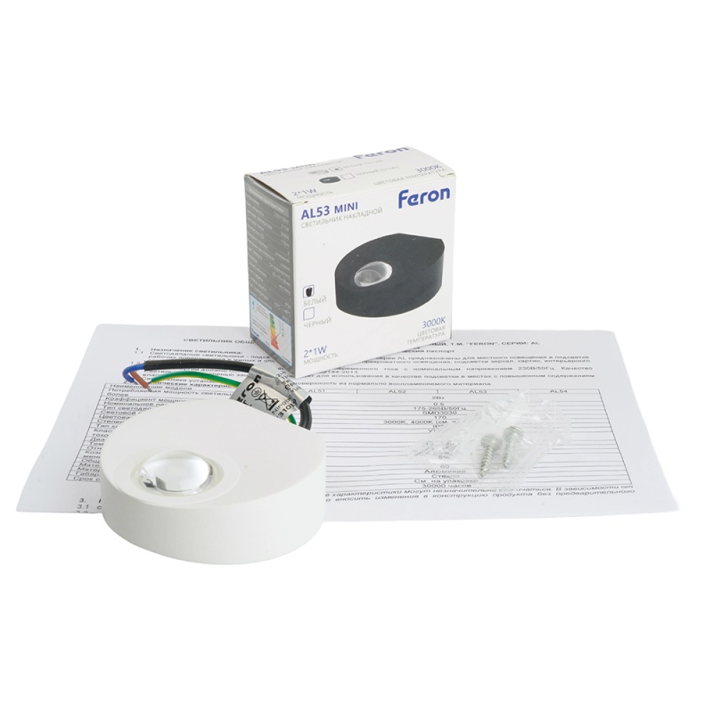 Светодиодный светильник стационарный Feron AL53 2*1W 3000K белый 51139