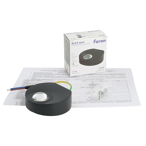 Светодиодный светильник стационарный Feron AL53 2*1W 4000K черный 51140