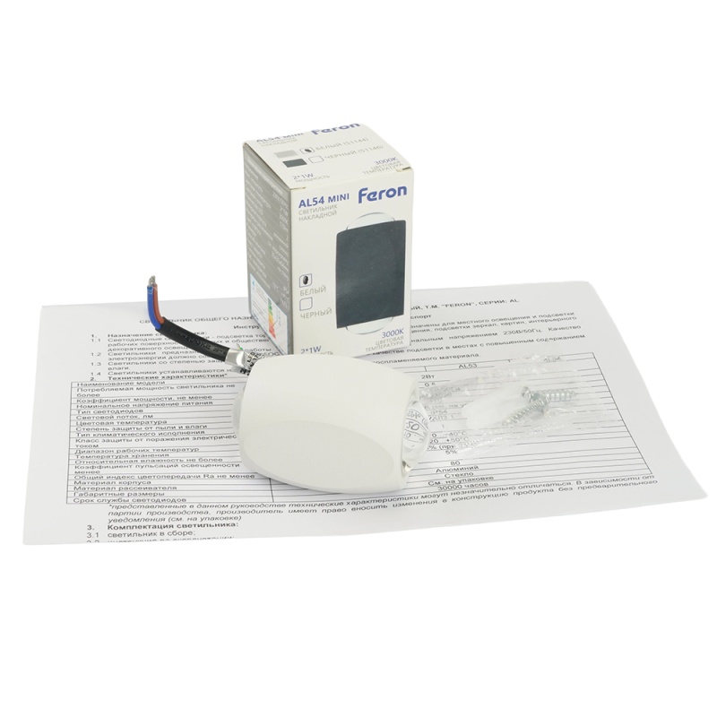 Характеристики Светодиодный светильник стационарный Feron AL54 2*1W 3000K белый
