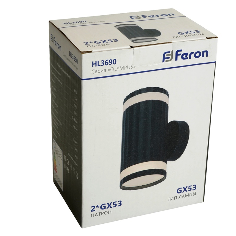 Характеристики Светильник настенный Feron HL3690 OLYMPUS 12W, 230V, 2*GX53, чёрный IP20