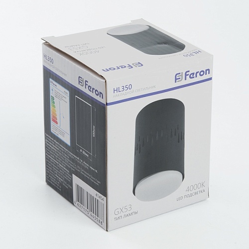 Характеристики Светильник потолочный Feron HL350 12W, 230V, GX53 и подсветка 1W, 4000K, черный