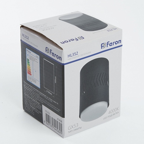 Характеристики Светильник потолочный Feron HL352 12W, 230V, GX53 и подсветка 1W, 4000K, черный