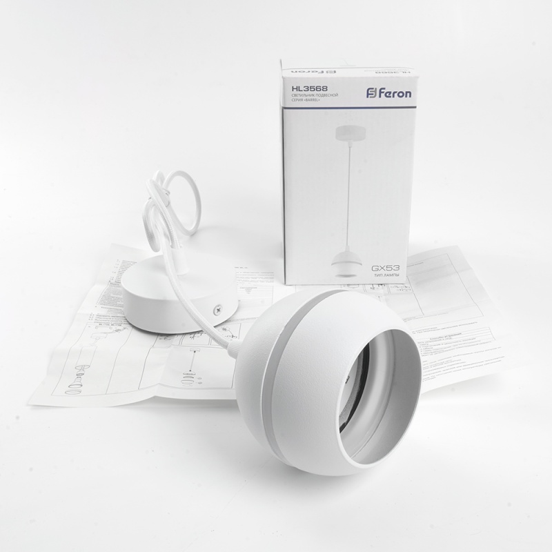 Характеристики Светильник потолочный Feron HL3568 на подвесе GX53 15W 230V, белый 90*80