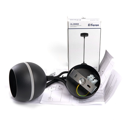 Характеристики Светильник потолочный Feron HL3568 на подвесе GX53 15W 230V, черный 90*80