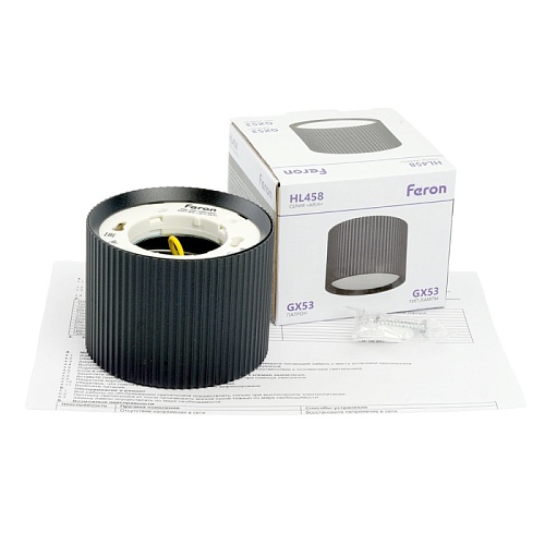 Характеристики Светильник потолочный Feron HL458 Barrel ARIA 12W, 230V, GX53, черный
