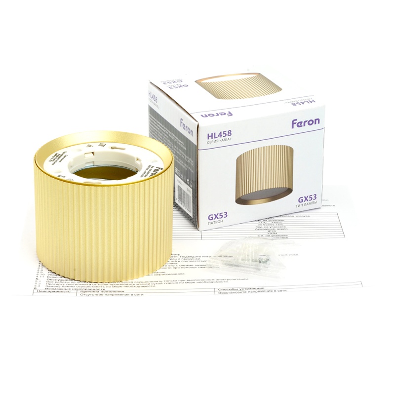 Характеристики Светильник потолочный Feron HL458 Barrel ARIA 12W, 230V, GX53, золото