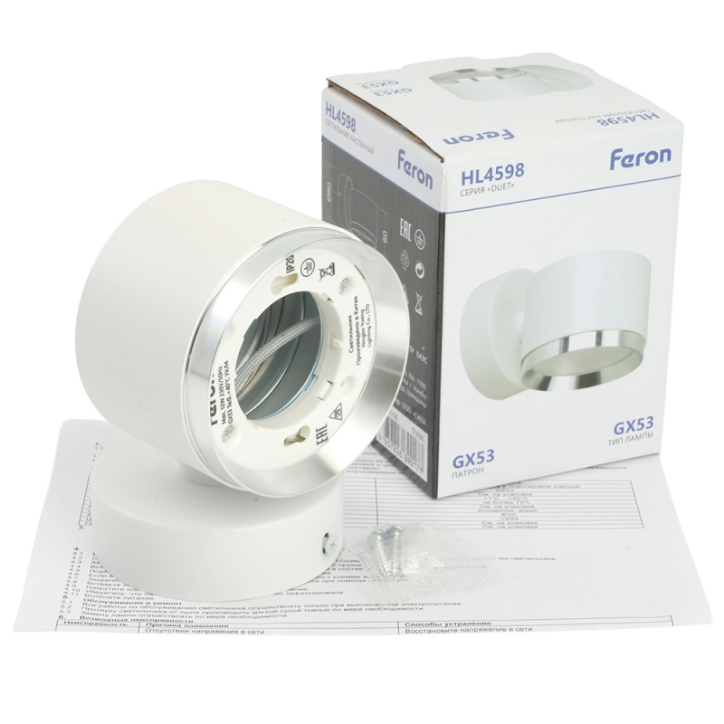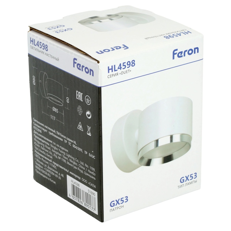 Характеристики Светильник настенный Feron HL4598 Barrel DUET 12W, 230V,GX53, белый + хром IP20