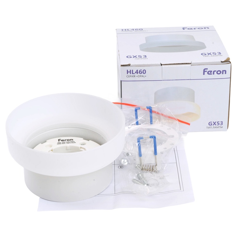 Характеристики Светильник потолочный Feron HL460 Barrel OPAL 12W, 230V, GX53, белый