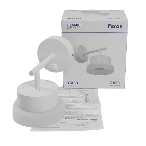 Характеристики Светильник настенный Feron HL4600 OPAL 12W, 230V, GX53, белый
