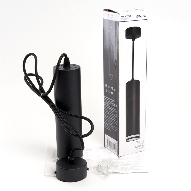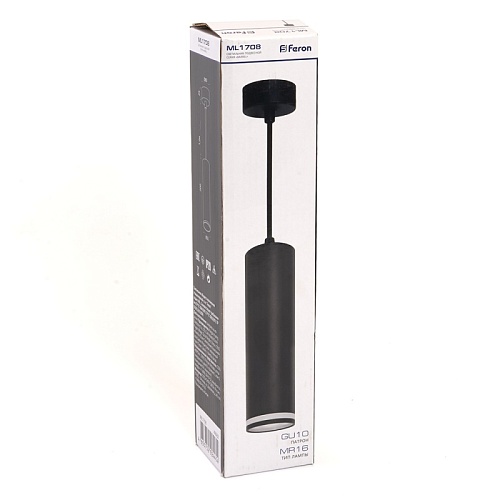 Характеристики Светильник потолочный Feron ML1708 Barrel LUNA на подвесе MR16 35W 230V, черный 55*200