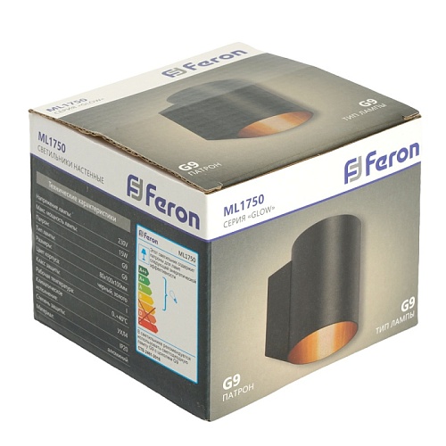 Характеристики Светильник настенный Feron ML1750 Glow G9,15W, 230V чёрный + золото IP20