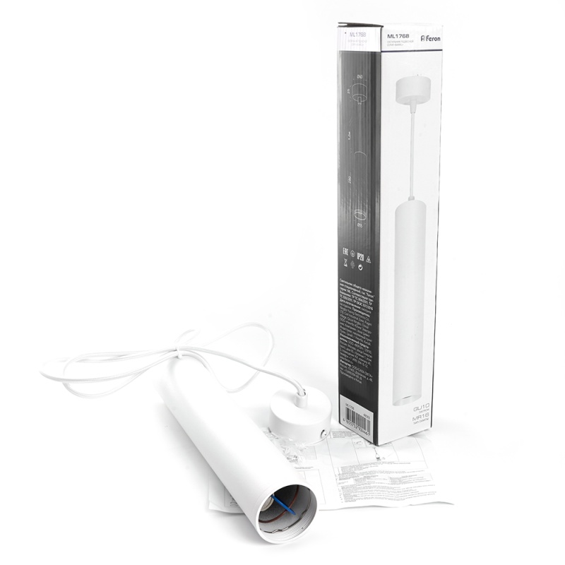 Светильник потолочный Feron ML1768 на подвесе MR16 35W 230V, белый 55*280 48087