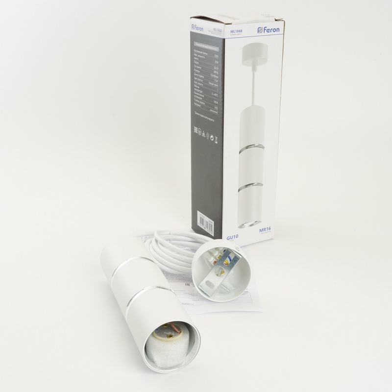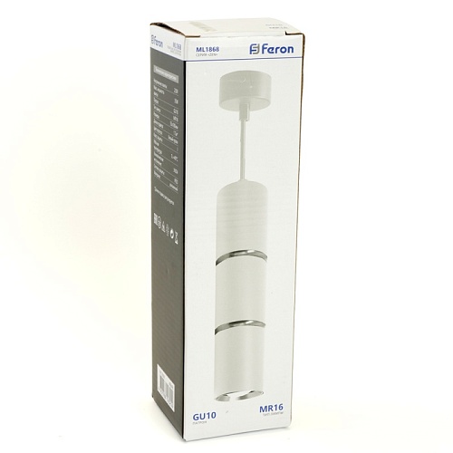 Характеристики Светильник потолочный Feron ML1868 Barrel ZEN levitation на подвесе MR16 35W 230V, белый, хром, 55*180