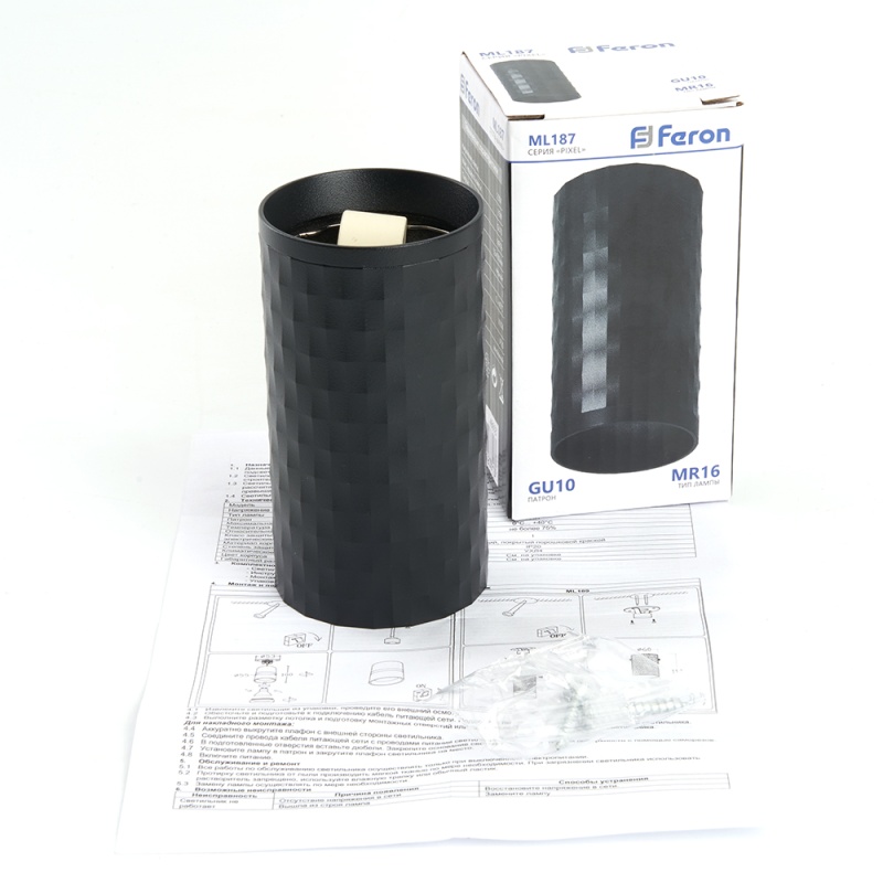 Отзывы о Светильник потолочный Feron ML187 Barrel PIXEL MR16 GU10 35W 230V, чёрный