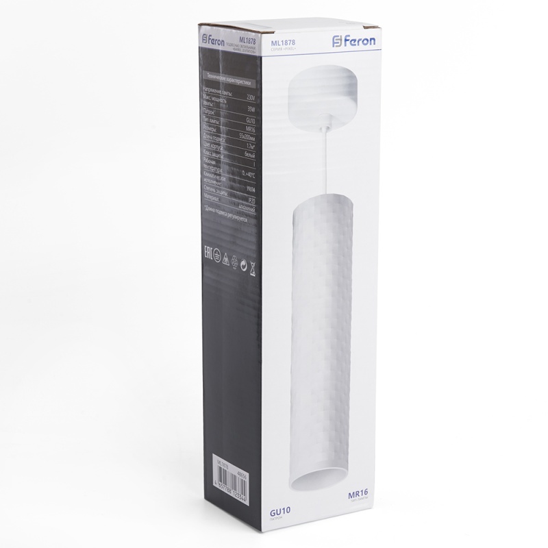 Характеристики Светильник потолочный Feron ML1878 Barrel PIXEL Levitation на подвесе MR16 35W 230V, белый 55*200