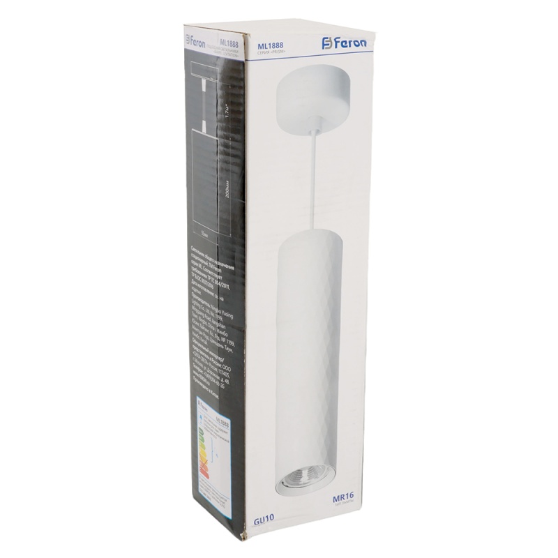 Характеристики Светильник потолочный Feron ML1888 Barrel PRISM levitation на подвесе MR16 35W, 230V, белый 55*200