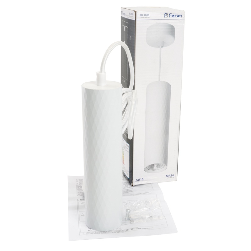 Светильник потолочный Feron ML1888 Barrel PRISM levitation на подвесе MR16 35W, 230V, белый 55*200 48800