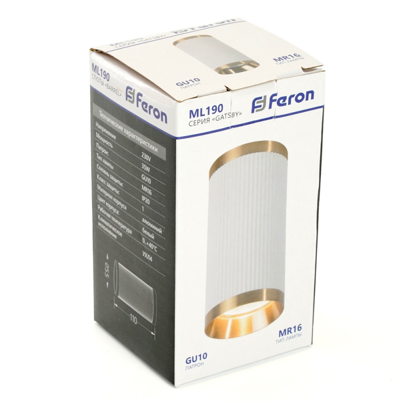 Характеристики Светильник потолочный Feron ML190 Barrel GATSBY MR16 GU10 35W 230V, белый + античное золото