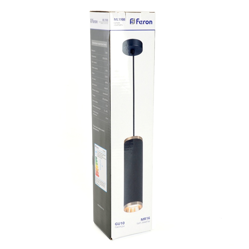 Характеристики Светильник потолочный Feron ML1908 Barrel GATSBY levitation на подвесе MR16 35W, 230V, чёрный, античное золото 55*200
