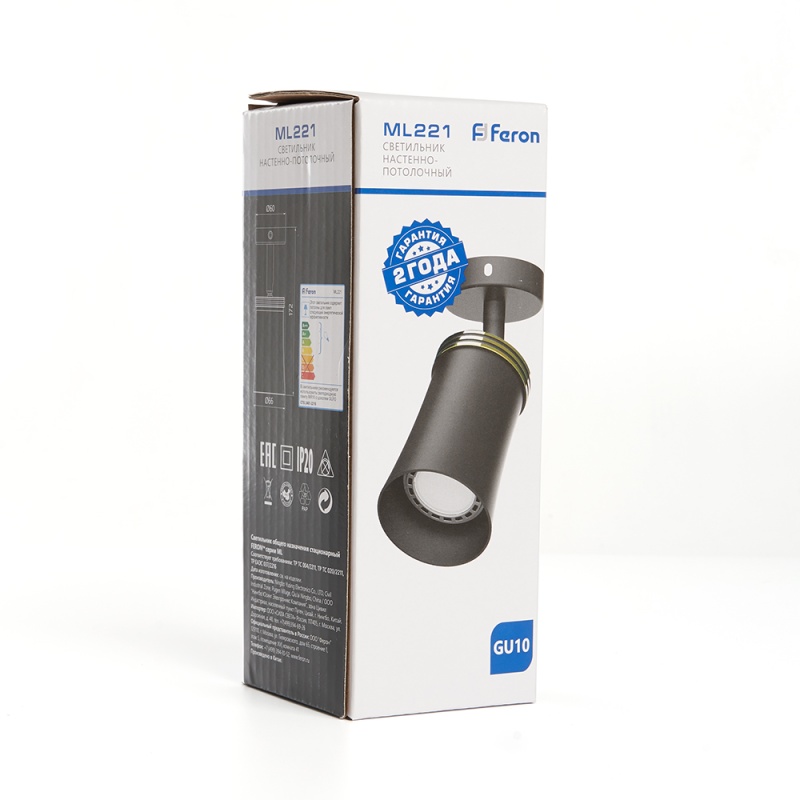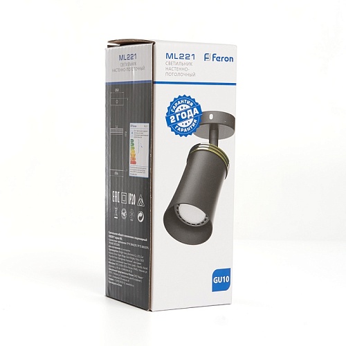 Характеристики Светильник Feron ML221 настенно-потолочный под лампу GU10, черный