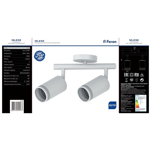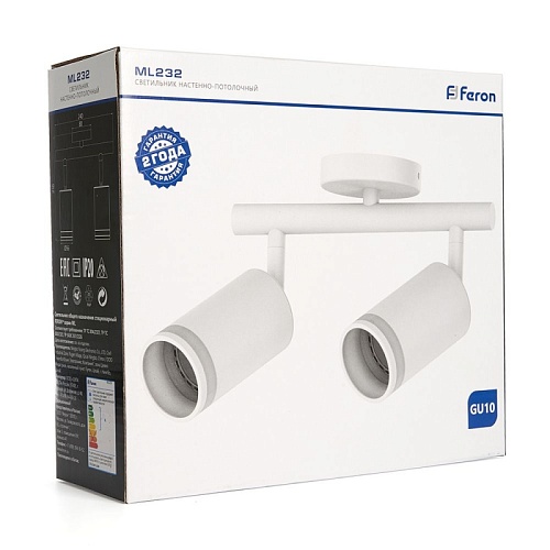 Характеристики Светильник Feron ML232 LUNA настенно-потолочный под лампу GU10, белый