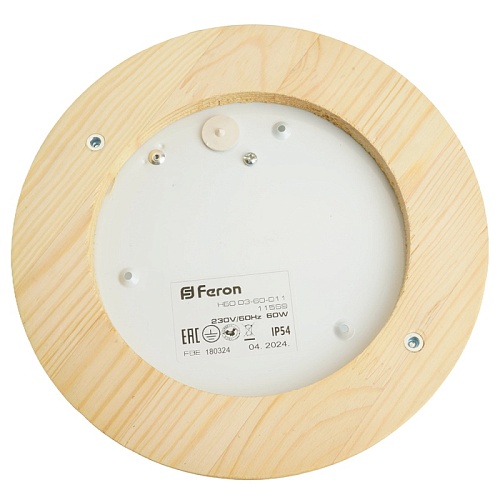 Характеристики Светильник накладной IP54, 220V 60Вт Е27, дерево, клен, круг НБО 03-60-011