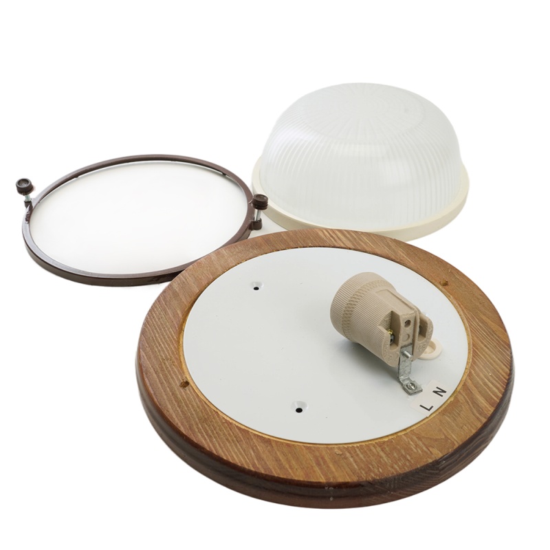 Светильник накладной IP54, 220V 60Вт Е27, дерево,орех, круг НБО 03-60-021