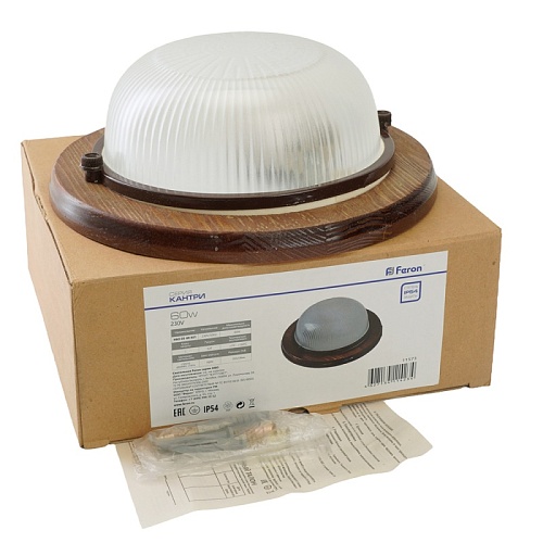 Характеристики Светильник накладной IP54, 220V 60Вт Е27, дерево,орех, круг НБО 03-60-021