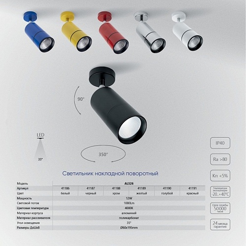 Характеристики Светильник накладной светодиодный для акцентного освещения FERON AL526 41187