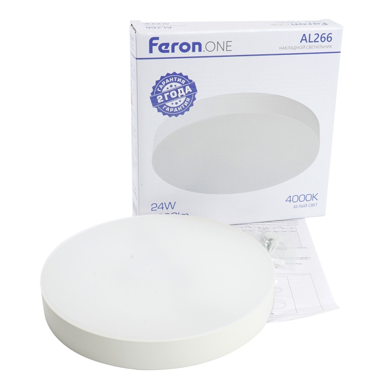 Характеристики Светодиодный светильник Feron AL266 накладной 24W 4000K белый