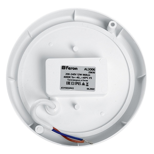 Характеристики Светильник светодиодный пылевлагозащищённый с ИК-датчиком Feron AL3006 в пластиковом корпусе 12W 4000K 220V IP65 белый