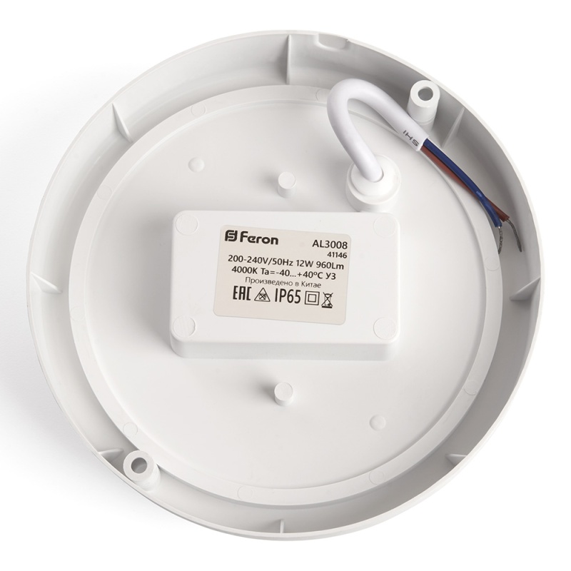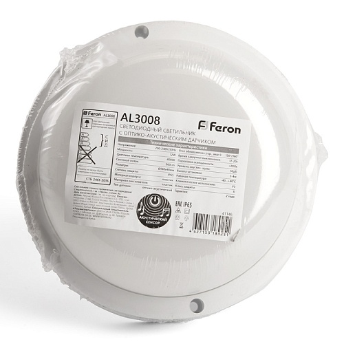 Характеристики Светильник светодиодный пылевлагозащищённый с оптико- акустическим датчиком Feron AL3008 в пластиковом корпусе 12W 4000K 220V IP65 белый