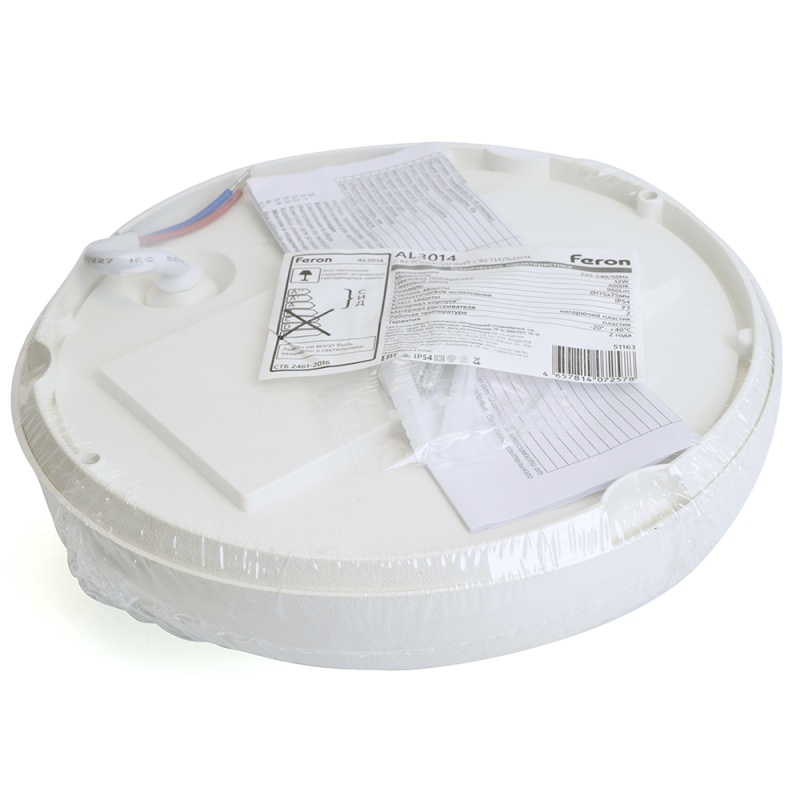Характеристики Светильник светодиодный пылевлагозащищённый Feron AL3014 в пластиковом корпусе 12W 4000K IP54 белый