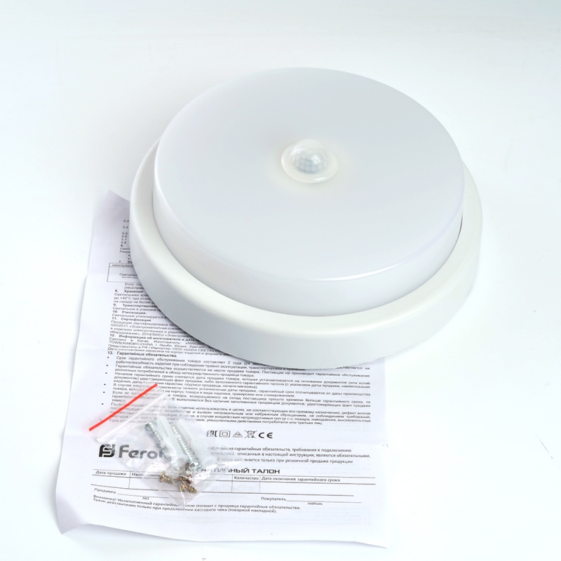 Отзывы о Светильник светодиодный пылевлагозащищённый с ИК-датчиком Feron AL3016 в пластиковом корпусе 12W 6500K IP65 белый