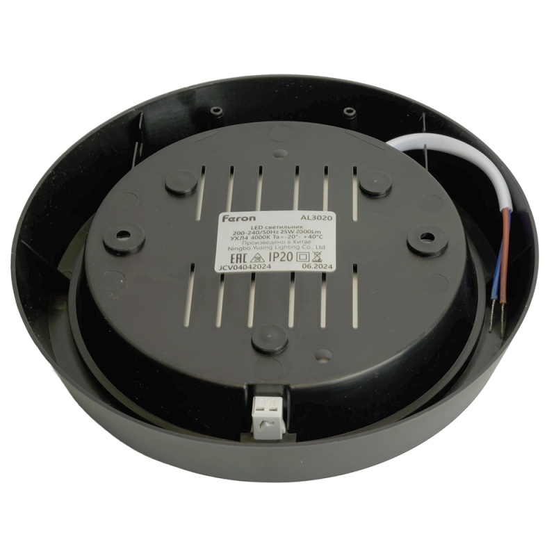 Характеристики Светильник светодиодный Feron AL3020 в пластиковом корпусе 25W 4000K IP20 черный