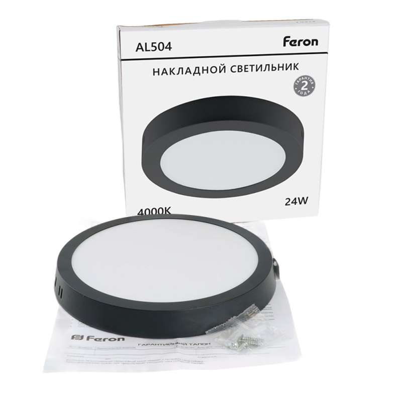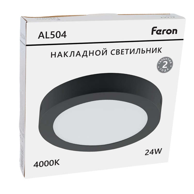 Характеристики Светодиодный светильник Feron AL504 накладной 24W 4000K черный