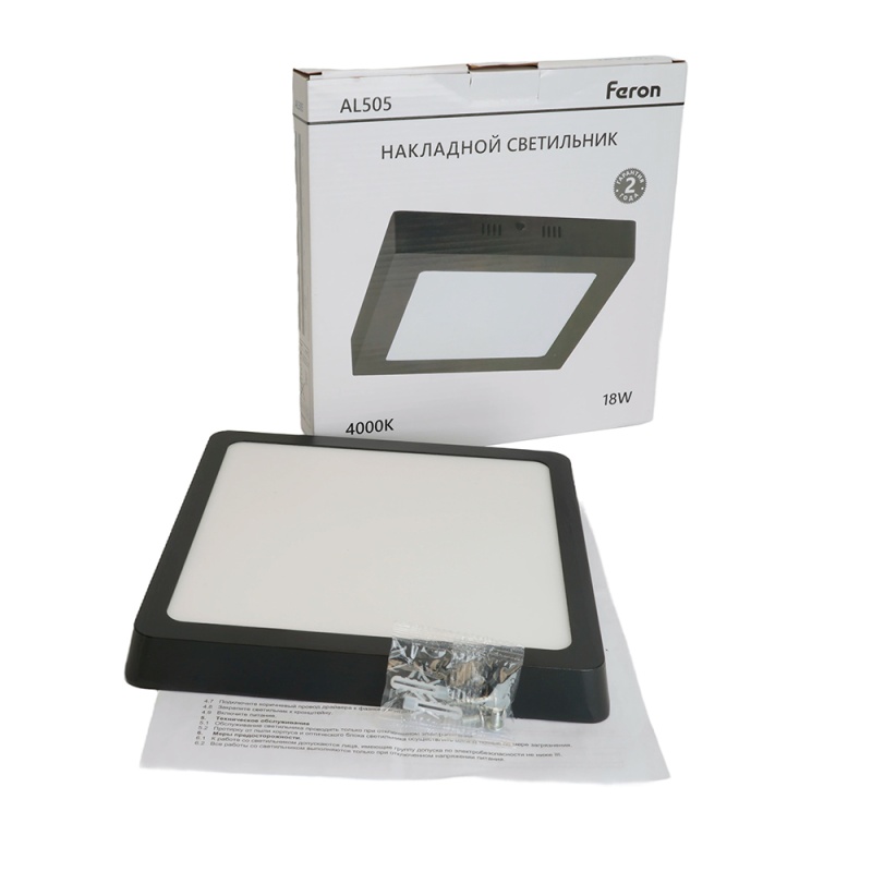 Характеристики Светодиодный светильник Feron AL505 накладной 18W 4000K черный