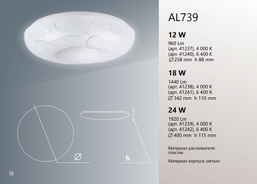 Характеристики Светильник накладной светодиодный FERON AL739 41238