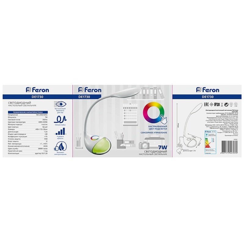 Характеристики Светильник настольный светодиодный FERON DE1730 41553