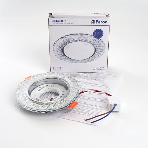 Характеристики Светильник встраиваемый с белой LED подсветкой Feron CD4021 потолочный GX53 без лампы прозрачный
