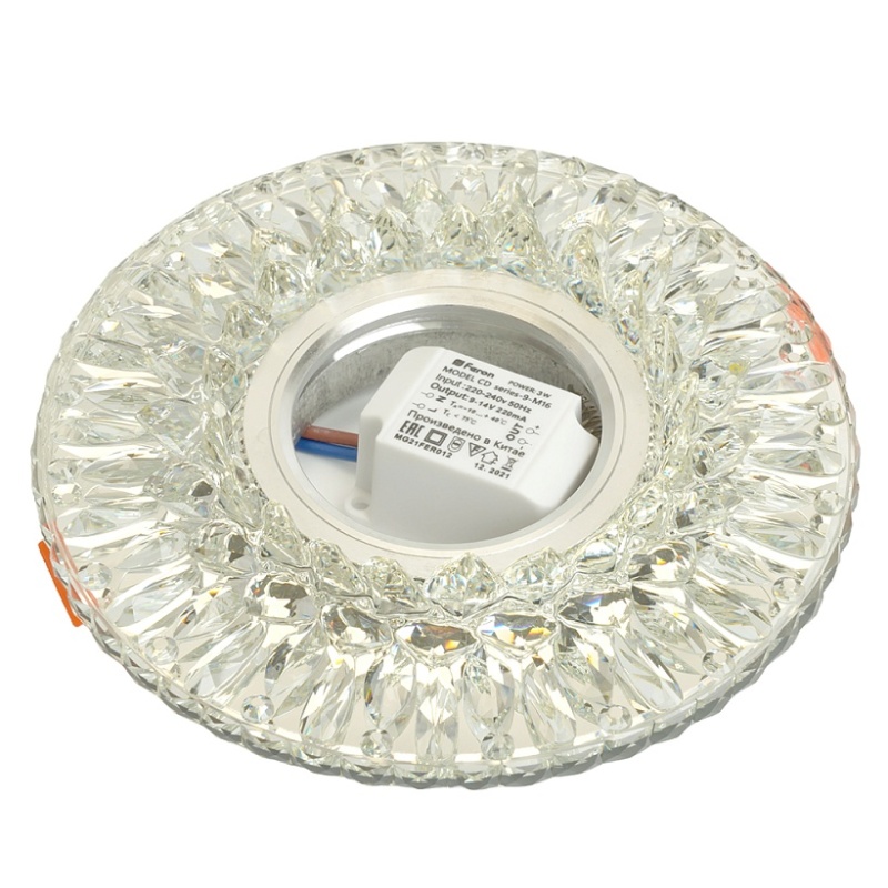 Характеристики Светильник встраиваемый с белой LED подсветкой Feron CD4028 потолочный GX53 без лампы прозрачный