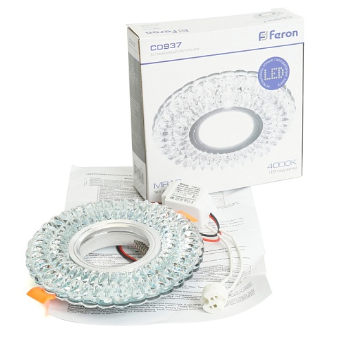 Характеристики Светильник встраиваемый с белой LED подсветкой Feron CD937 потолочный MR16 G5.3 прозрачный