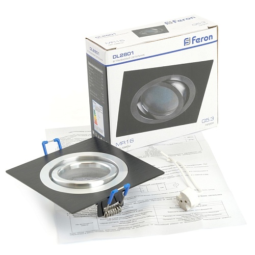 Характеристики Светильник встраиваемый Feron DL2801 потолочный MR16 G5.3 черный-хром