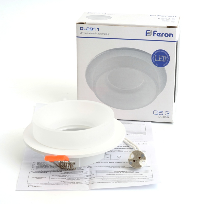 Характеристики Светильник встраиваемый Feron DL2911 потолочный MR16 G5.3 белый
